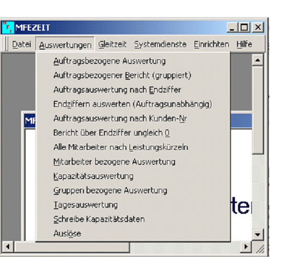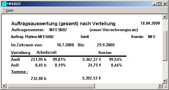 Mit wenigen Knopfdrücken, die auf einen Auftrag geleisteten Stunden und Kosten erhalten. Sofort sehen wie effektiv ein Auftrag war. Erbrachte Arbeitsleistungen ersehen. Unterscheiden sich Ihre Aufträge von Auftrag zu Aufrag, dann ist MFEZEIT genau das richtige für Sie. Auftragsbegleitend werden die Stunden erfasst und Sie haben immer den Überblick über die Kosten.